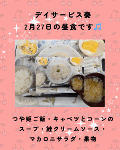 鮭のクリームソース♬ コメントを残す 本日のデイサービス奏の昼食です 美味しく頂いております とよみん管理栄養士の一口お役立ち情報 クリームソースは牛乳をベースに野菜を煮込んでおります。カルシウムやビタミンが豊富で疲労回復や骨の強化が期待されます。 朝晩は、まだまだ寒い日が続きます。煮込み料理で身体を温めて下さいね♫ 午後も背筋のばして頑張って行きましょい