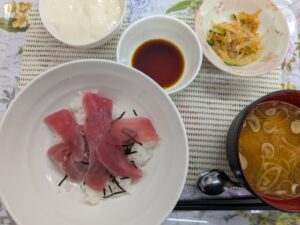鉄火丼♬ホームひいらぎの昼食です。 コメントを残す 本日のホームひいらぎの昼食です 鉄火丼♫ 大根胡麻和え フルーチェ 豆腐と葱の味噌汁 美味しゅうございます 鮪と胡麻の相乗効果 鮪に多く含まれているDHAとEPA は脳活性化に役立ち更に胡麻に含まれているビタミンEとセサミンは抗酸化作用が期待されます。美味しく食べて、お肌すべすべ&動脈硬化予防を致しましょう♫ 今日の鶴岡は吹雪。。。 午後も背筋のばして頑張っていきましょい♫