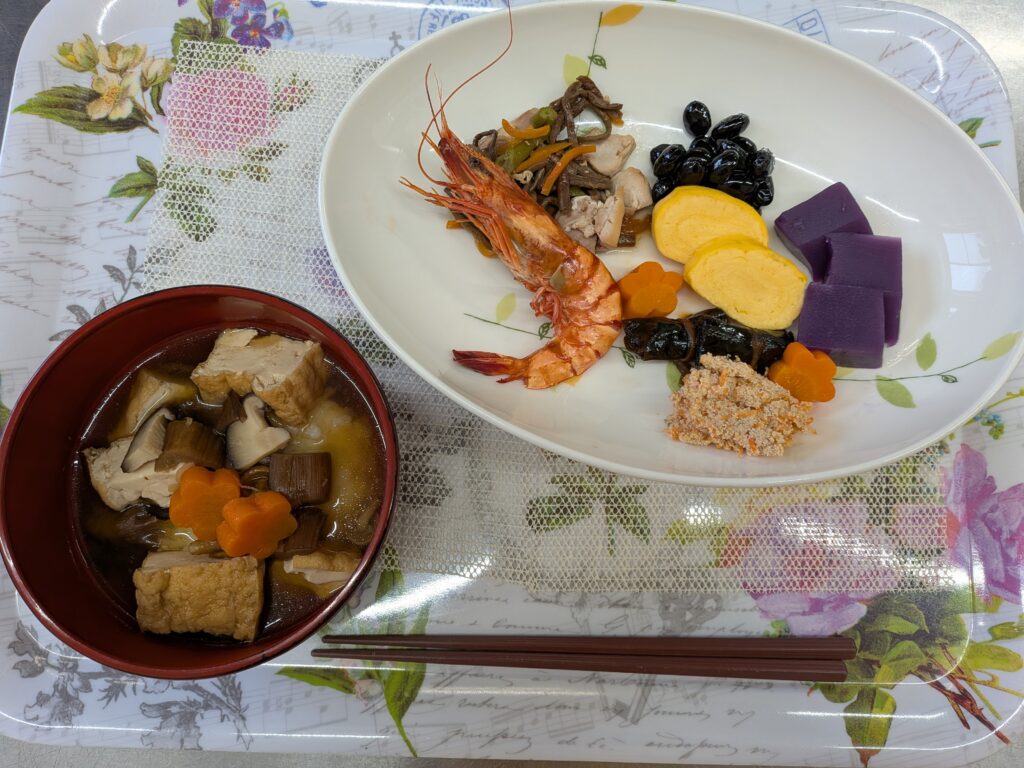 新しい年明けに♬ コメントを残す 謹賀新年♫ 本日のホームひいらぎの おせち♫ お雑煮の餅は手作り嚥下食です 美味しいの笑顔が溢れています。 新年を皆さんと共に過ごせる幸せに感謝ですぅ♫ スタッフに感謝ですぅ♫ 鶴岡は大雪 深夜.早朝からの除雪有難うございます 今年も背筋のばして頑張っていきましょい♫