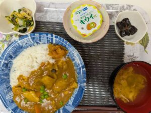 卵スープ、カレーの豚肉のたんぱく質を一緒に摂る事で疲労回復に役立ちます。