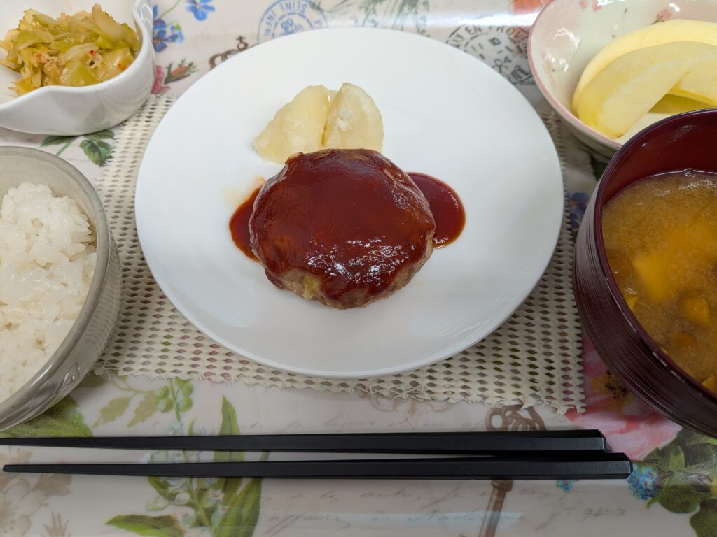 なめこの味噌汁♬ コメントを残す 本日のデイサービス奏の昼食ですハンバーグキャベツと蟹のお浸し林檎なめこ汁つや姫ご飯味噌は、地元ハナブサ醤油さんから購入させて頂いおります風味が有りとても美味しいお味噌です。なめこ汁は、なめこの「ぬめり」成分が腸内環境を整え便秘解消に役立つ効果が期待されます。豆腐のたんぱく質と合わせる事で栄養バランスもアップします。悪天候、皆さまお気をつけて下さい。午後も背筋のばして頑張っていきましょい♫