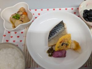 鯖の塩焼きの五目玉子と藤沢蕪添え